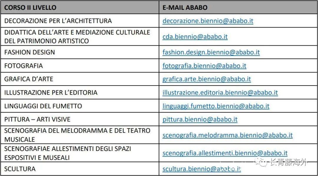 碩士:繪畫、雕塑、裝飾、版畫、舞臺美術和情節劇)、舞臺美術和場景設計、服裝設計、平面設計、漫畫、插畫、攝影。