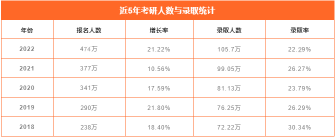 2022考研大戰(zhàn)已落下帷幕!根據(jù)教育部發(fā)布的數(shù)據(jù)顯示:今年考研報(bào)考人數(shù)達(dá)474萬(wàn)人,再一次突破了歷史記錄。2022年研究生招生人數(shù)僅為110.7萬(wàn),這也意味著有接近300萬(wàn)的考生無(wú)法金榜題名。