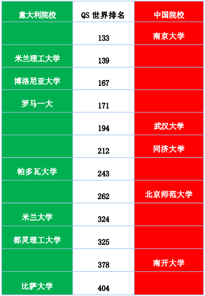 中意高校對(duì)比