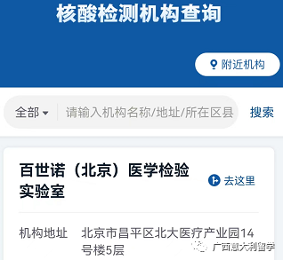 4、輸入你所在的城市,查詢就近的受認(rèn)證的核酸檢測機(jī)構(gòu),即能出英文認(rèn)證報(bào)告的機(jī)構(gòu)