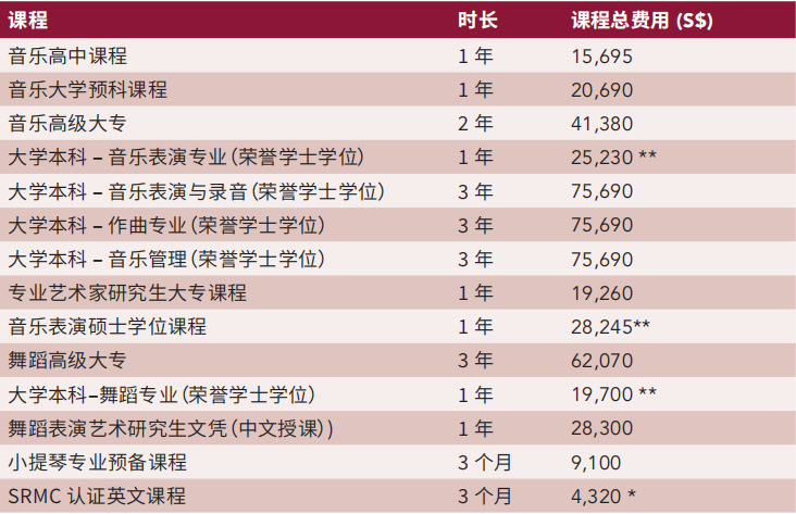 注:所有費用均包括現行稅率為8%的商品及服務稅(GST)